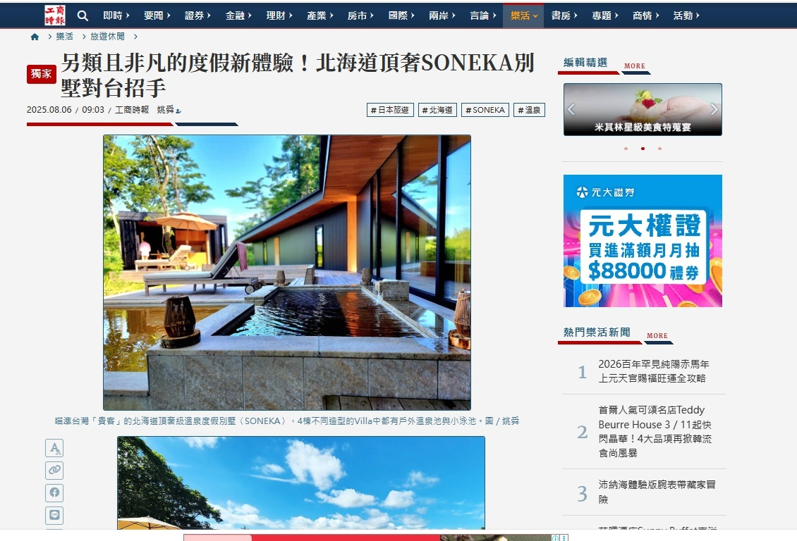 In July 2025, MediaPlus invited two highly influential Taiwanese media outlets, well known for their travel and gastronomy coverage and supported by a strong readership base, to participate in a three-day, two-night immersive experience. Following their stay and in-depth culinary exploration, both media outlets published extensive feature stories, enabling a wider Taiwanese audience to gain a deeper understanding and appreciation of Soneka.